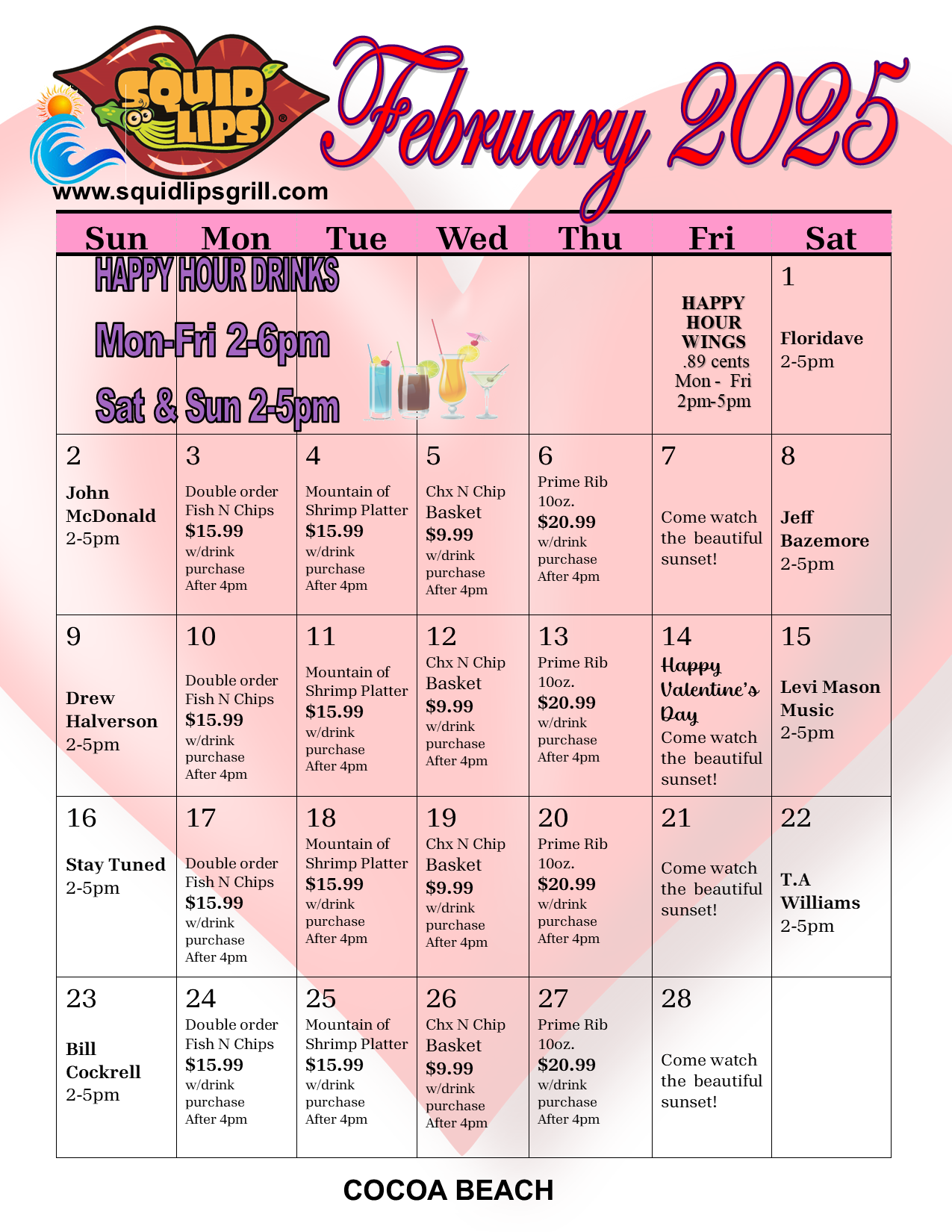 Cocoa Beach Squid Lips sub-menu