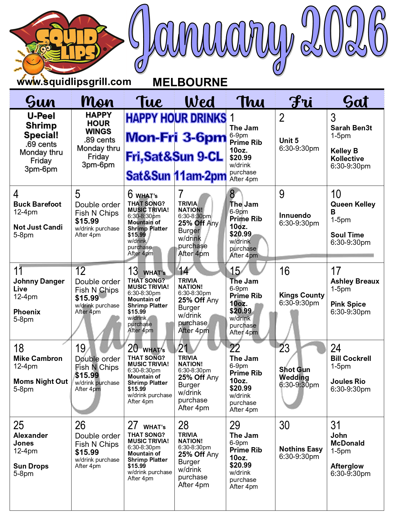 Cocoa Beach Squid Lips sub-menu