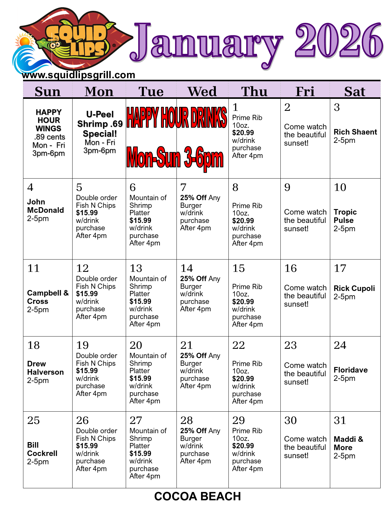 Cocoa Beach Squid Lips sub-menu