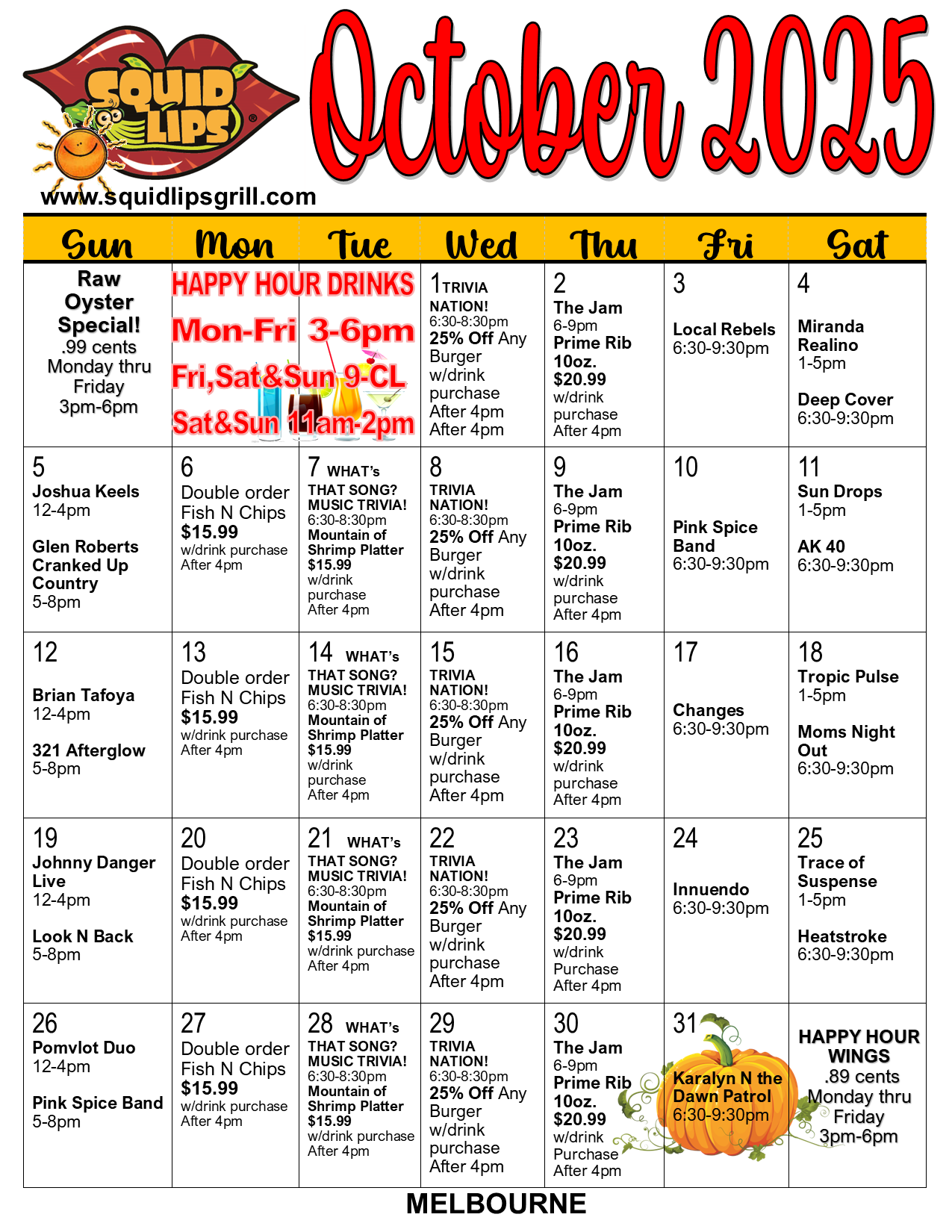 Cocoa Beach Squid Lips sub-menu