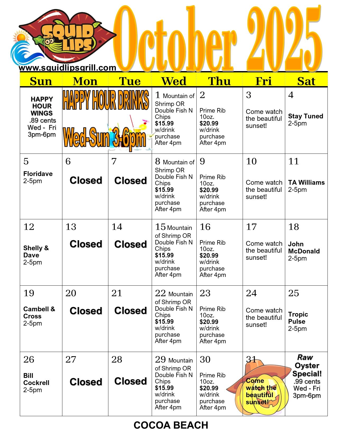 Cocoa Beach Squid Lips sub-menu