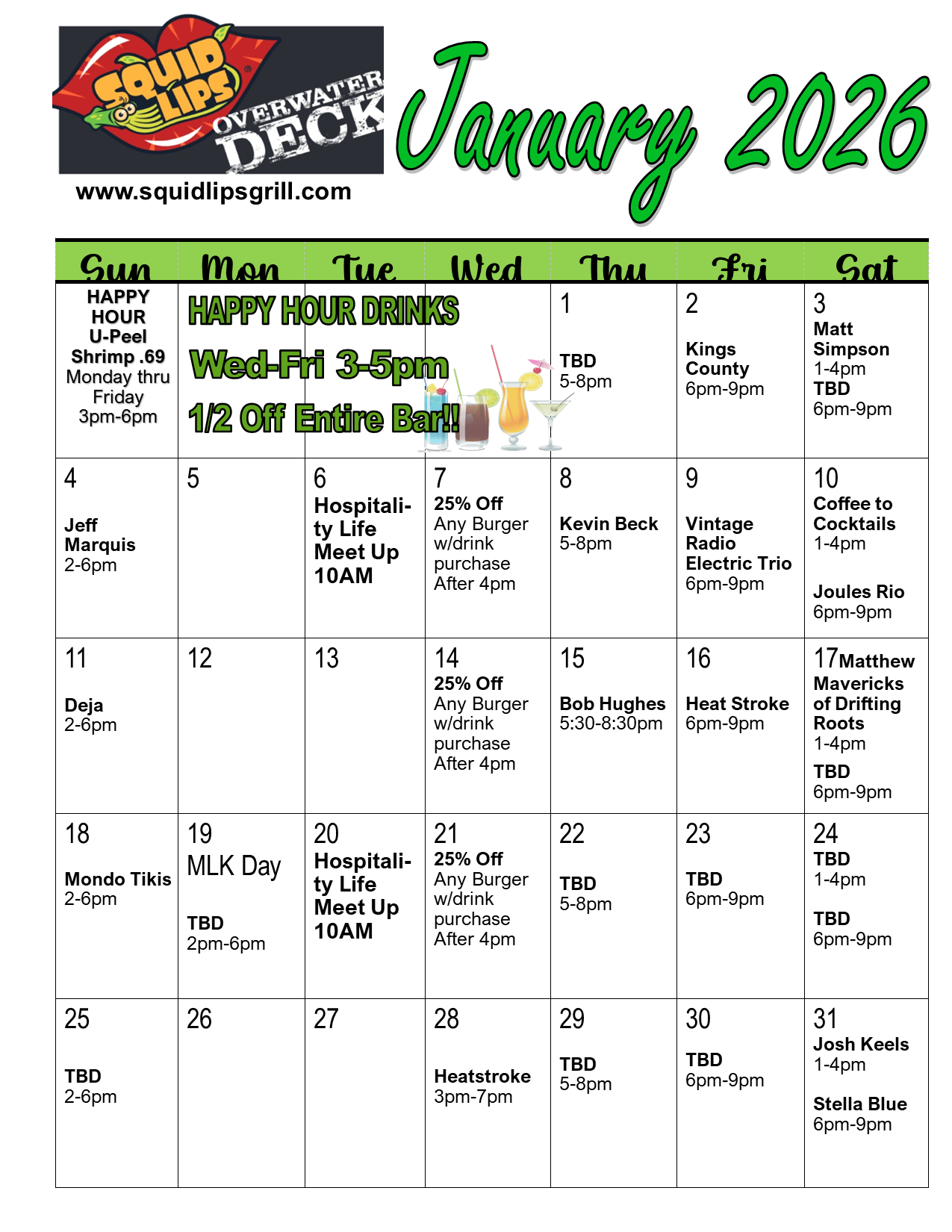 Cocoa Beach Squid Lips sub-menu